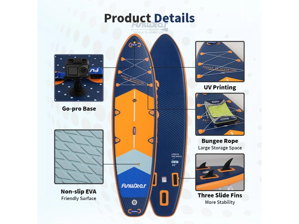 Descoperă libertatea de mișcare pe apă cu placa de paddleboard FunWater BlueLake , care oferă dimensiuni peste standard, stabilitate excelentă și o gamă largă de accesorii incluse în pachet. Este ideală pentru începători, familii și rideri experimentați care caută confort și o plimbare sigură.